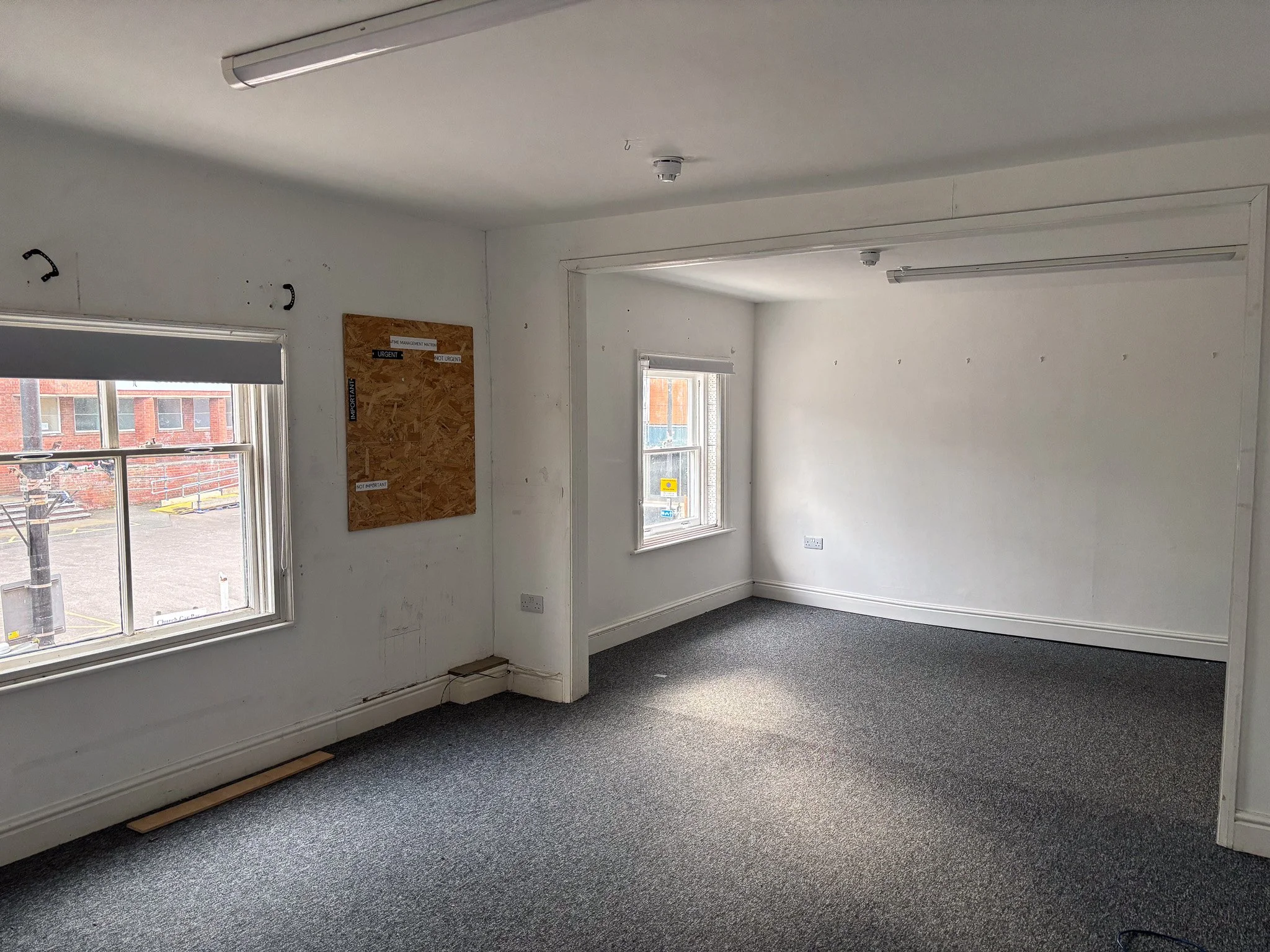 A versatile first floor office that can be taken as one generous open-plan room or divided into two separate units, perfect for a growing business or two complementary tenants. The space shares well-appointed communal facilities with neighbouring units, including a kitchenette and WC. Benefiting from a south-facing aspect, both configurations enjoy natural light throughout the working day. Additional features include electric heating and a phone door entry system.
